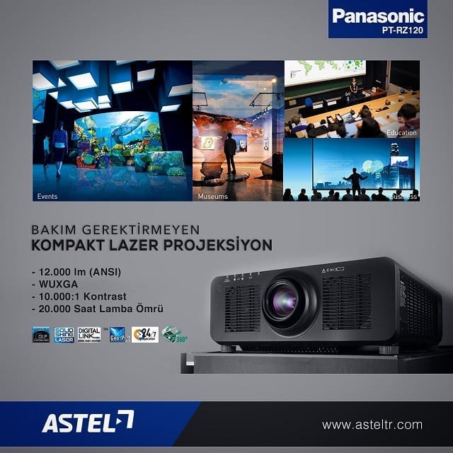 Esnek kurulum seçeneği ile müzeler, eğitim salonları ve toplantı odaları için kullanımı idealdir. Panasonic RZ120 Serisi Sahip Olduğu Yüksek Parlaklıkla Profesyonel Bir Görüntü Performansı Sunuyor.
